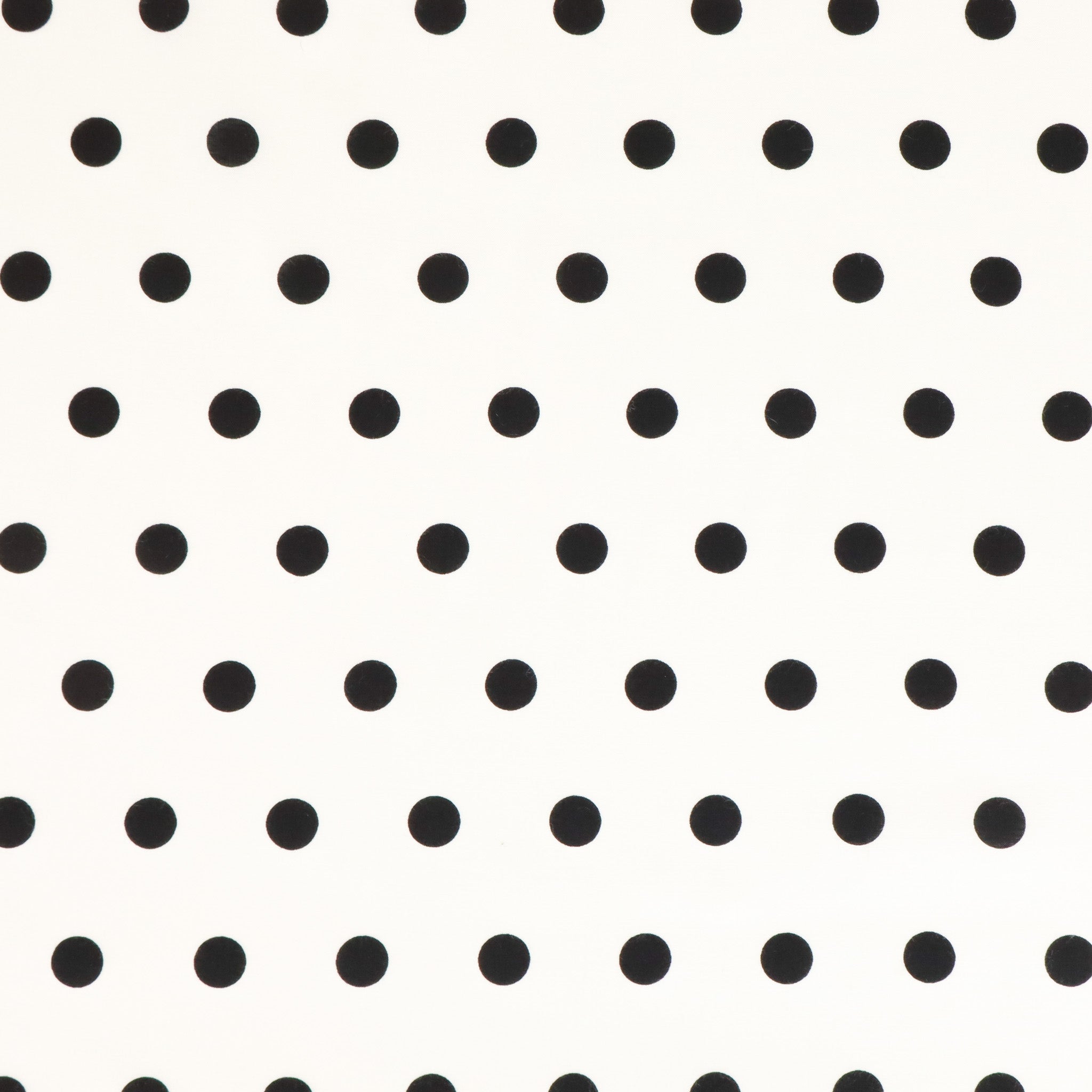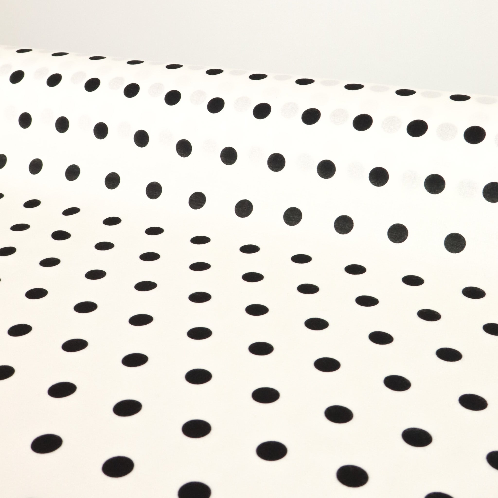 Rayon Polka Dot Print Deadstock - Small Black on White. A lightweight printed rayon featuring a polka dot design on a white base. Drapey, breathable, and easy to sew - ideal for shirts, skirts, and dresses.