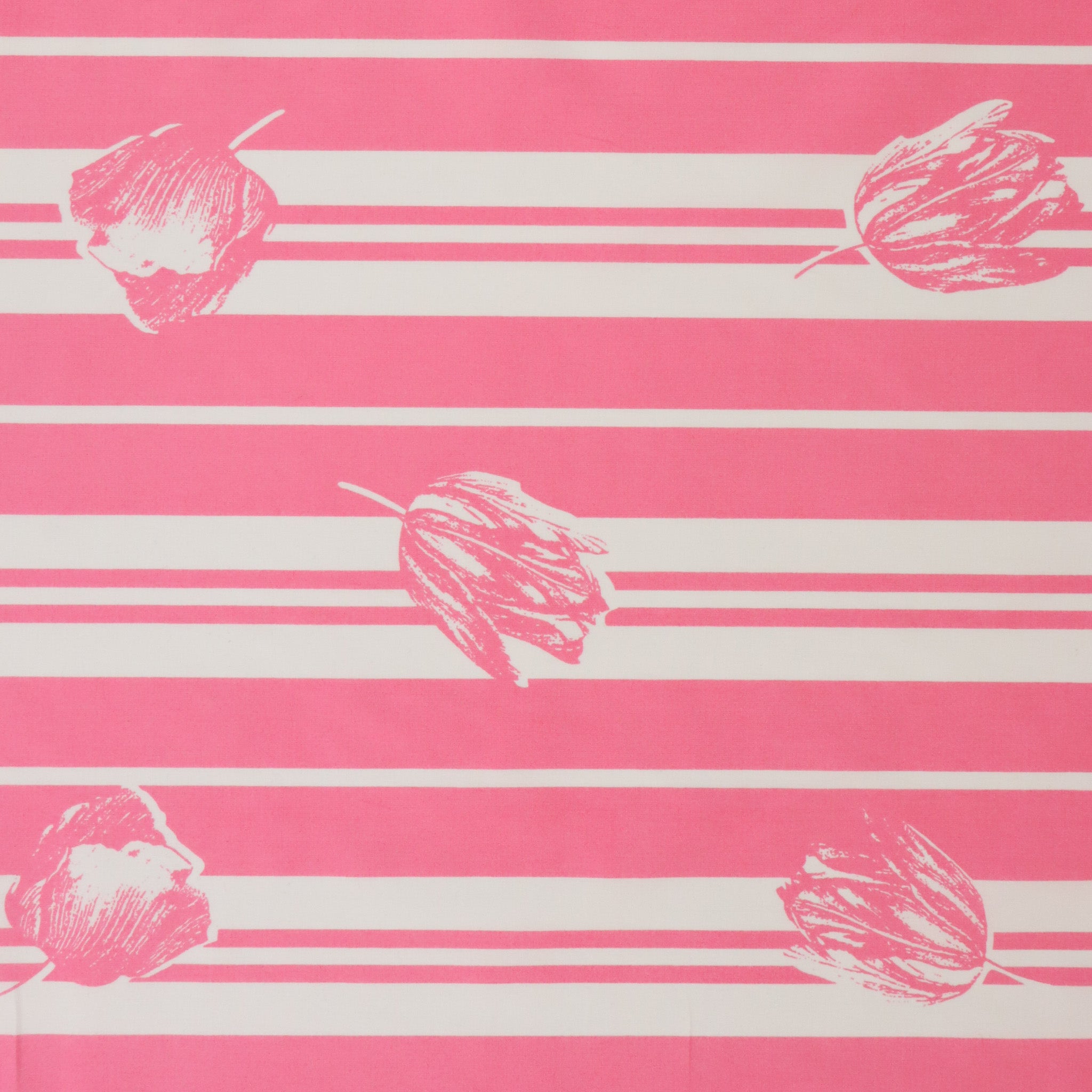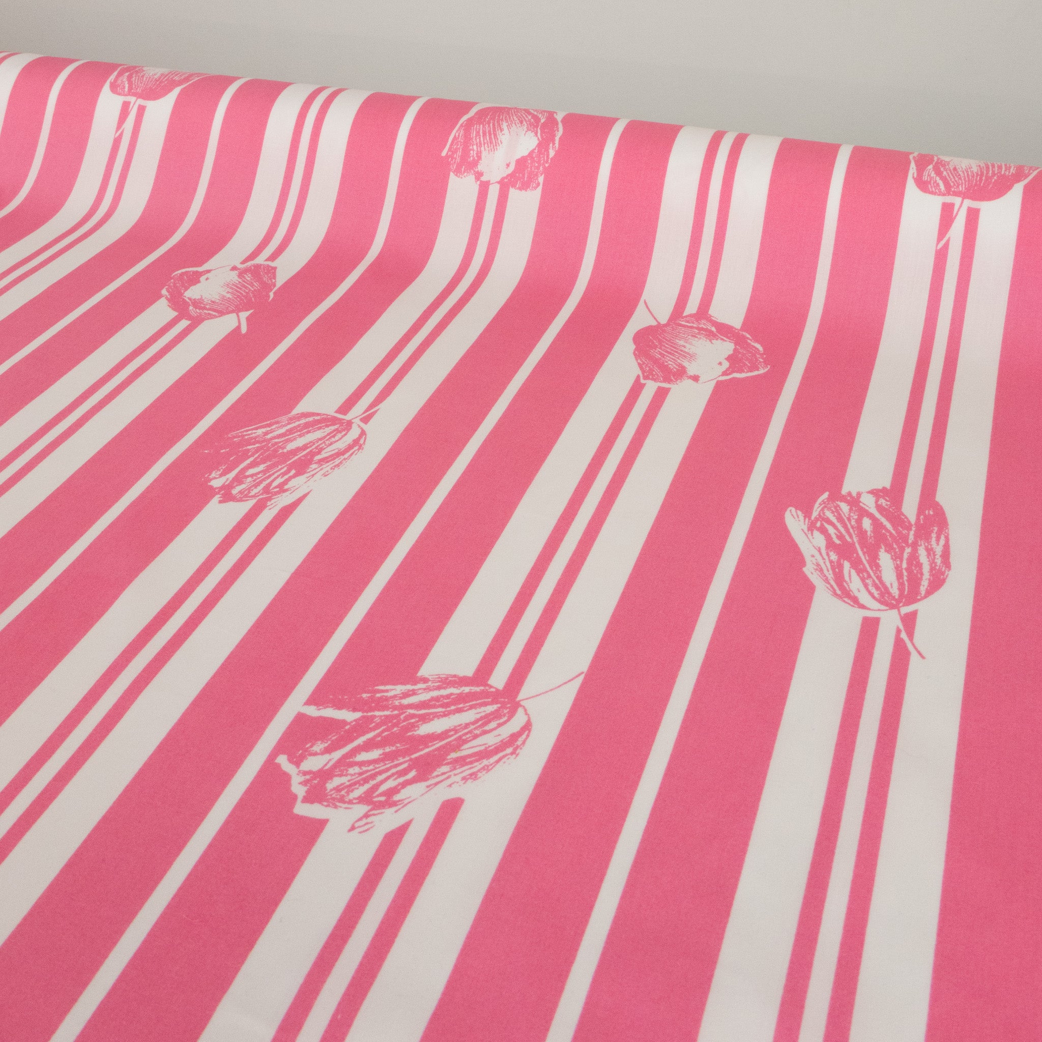 Bold Stripe Floral Cotton Poplin Print in Hot Pink. A crisp, lightweight cotton poplin featuring a bold floral stripe print in vibrant hot pink. Smooth and breathable with a structured drape - perfect for shirts, shorts, or dresses that make a statement.