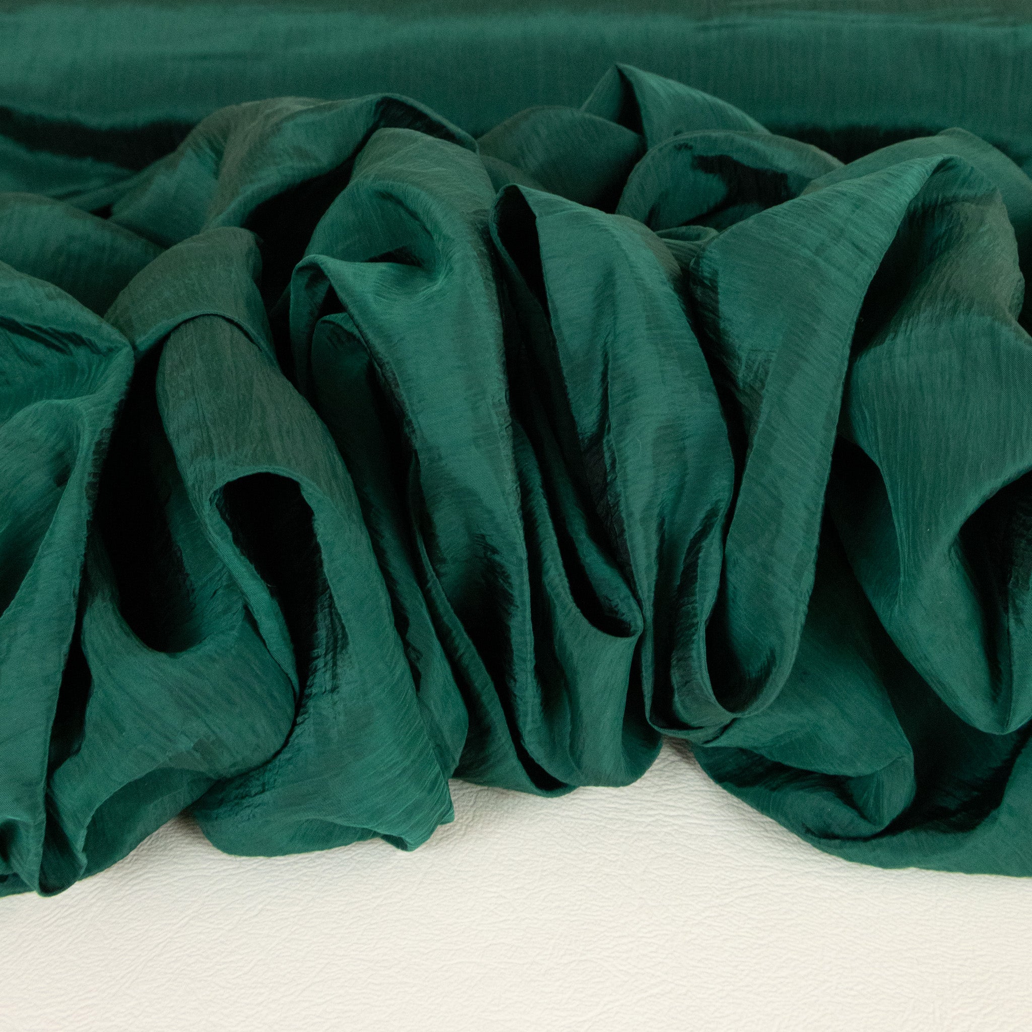 Lightweight Crinkle Satin in Emerald. A lustrous crinkle satin with a soft touch and subtle texture, reminiscent of a soft taffeta in hand feel and weight. Light yet structured, it’s perfect for skirts, dresses, and blouses - with just enough body to hold a beautiful puffy sleeve.