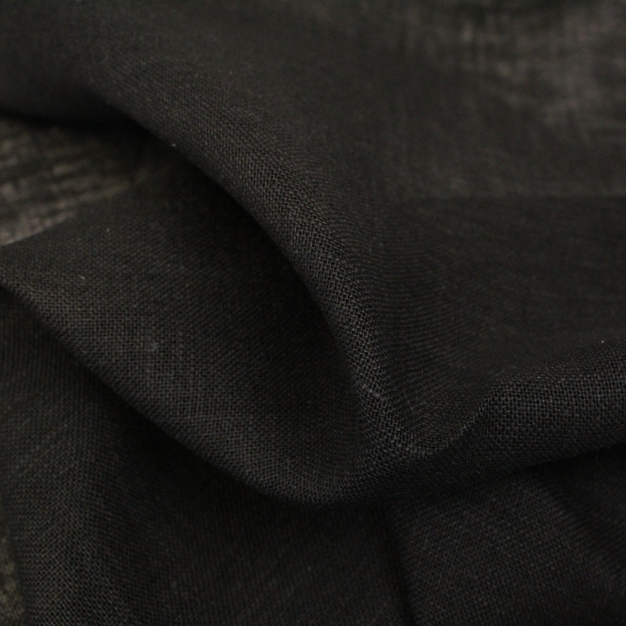 Linen Gauze in Black. This midweight linen gauze is perfect for layering. Suitable for Summer blouses, dresses, skirts, men’s shirts and beach coverups!