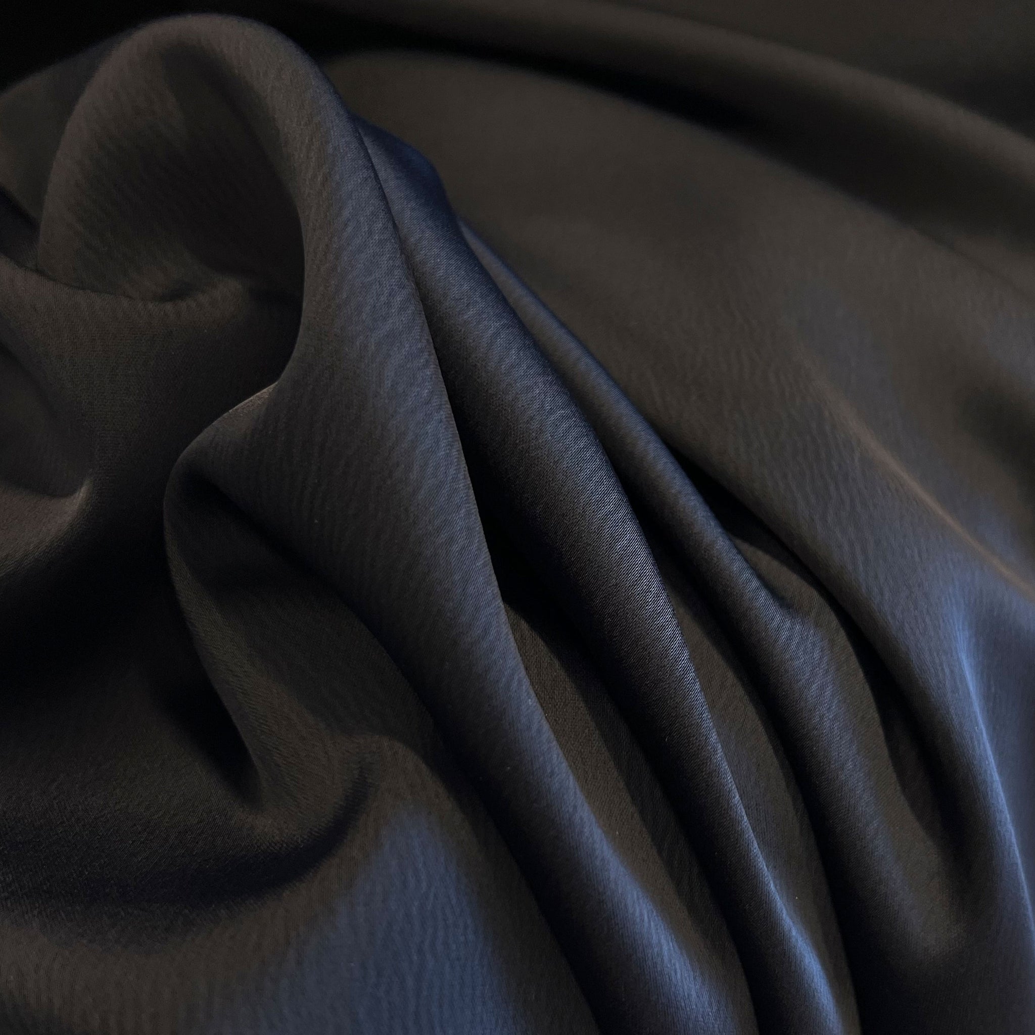 Ripple Effect Semi Matte Satin in Midnight. This unique, recycled polyester satin has a sandwash-like finish with a smooth, subtle ripple effect on the right side. It is semi-matte, giving just the right amount of lustre and a luxurious fluid drape. Ideal for wide leg trousers, blouses, dresses and luxurious special occasion pieces.