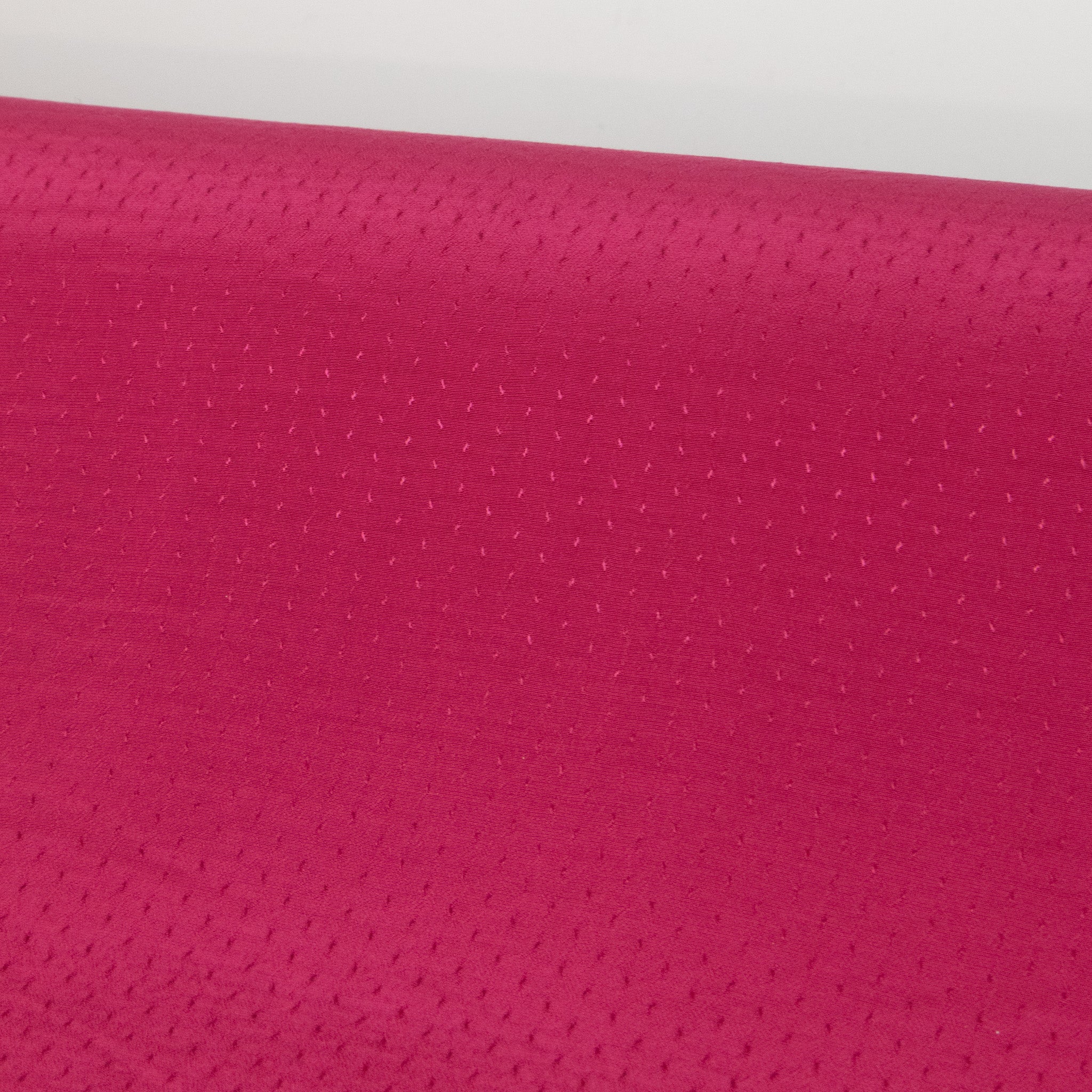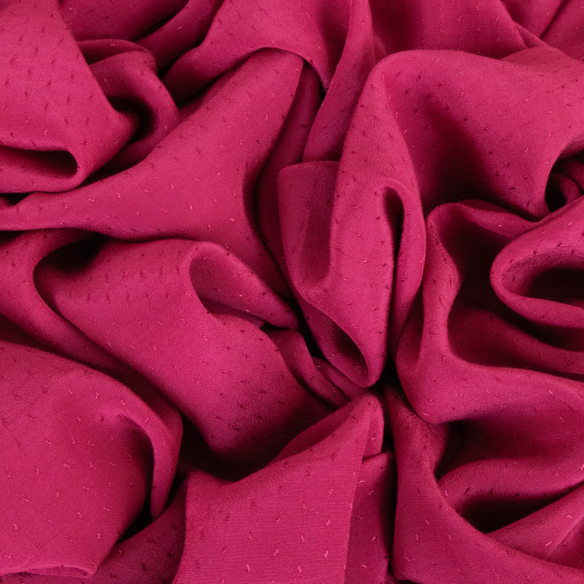 Viscose Dobby Satin in Raspberry. A vibrant raspberry pink viscose satin woven with a dobby texture for subtle surface interest. With its smooth hand feel, gentle sheen, and fluid drape, this fabric combines elegance with wearability. Lightweight yet versatile, it’s ideal for dresses, blouses and skirts. Sourced as a true designer end, available only in limited quantities.