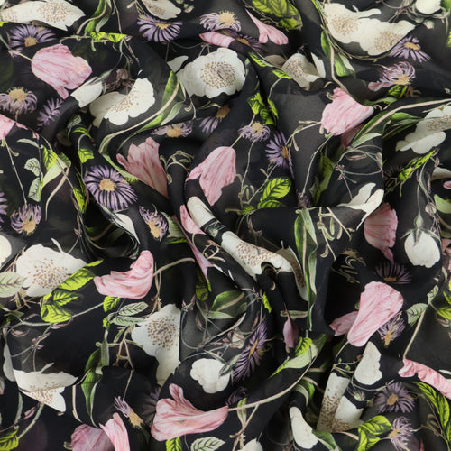 Queens Silk Chiffon Floral Print Designer End – Wildflower on Black
