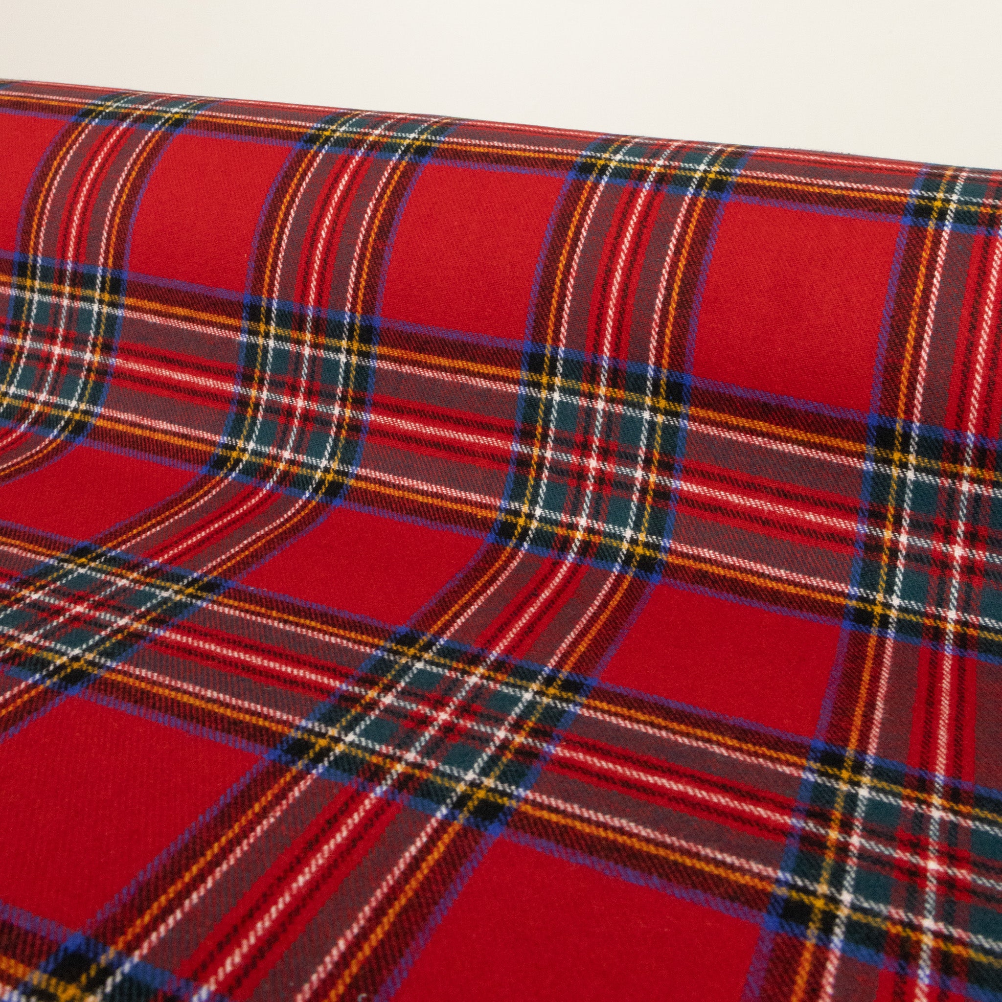 Brushed Cotton Plaid Deadstock in Red Tartan. A midweight brushed cotton plaid shirting sourced as deadstock. Woven in a yarn-dyed plaid check with a subtle twill structure, this fabric features a brushed face for a super-soft, cosy hand feel and a matte, opaque finish.
