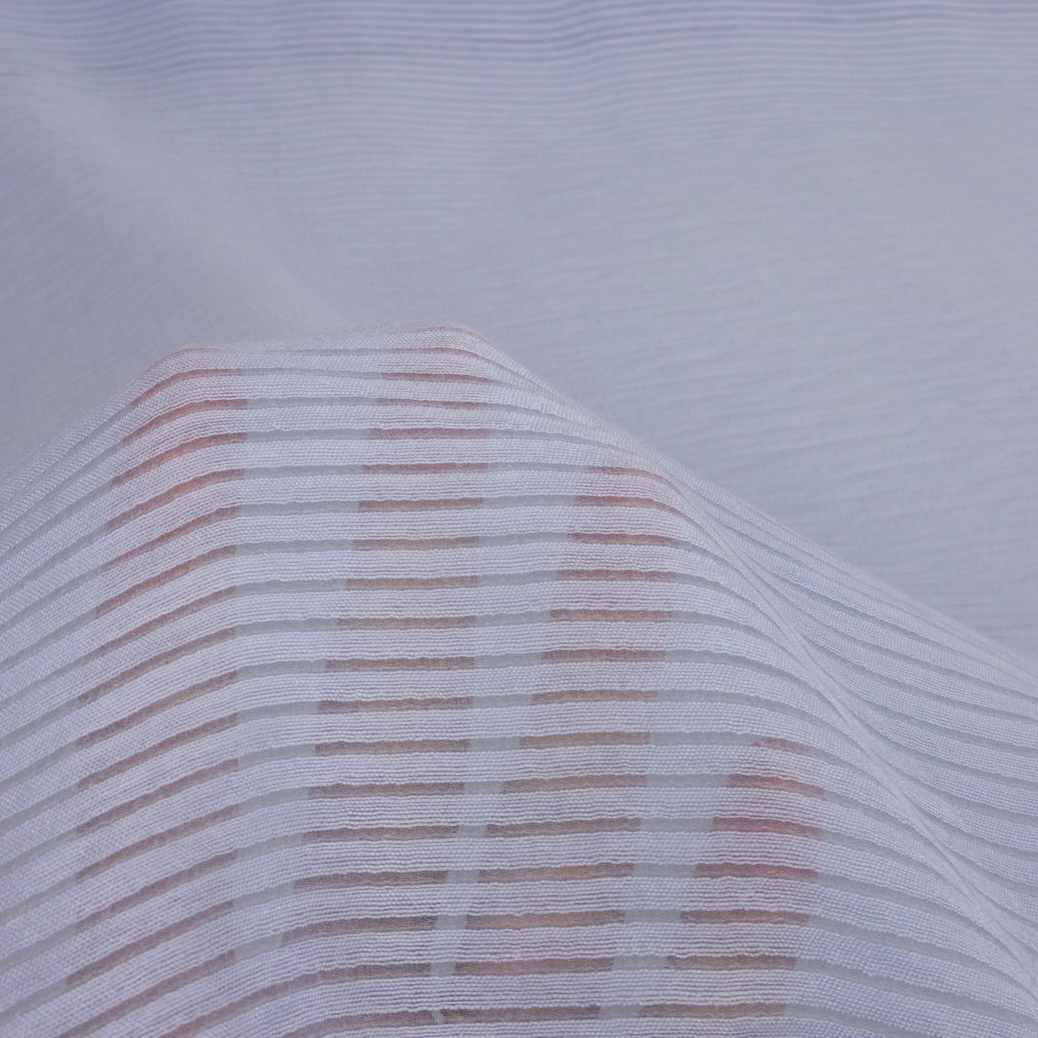 Cotton Nylon Self Stripe Voile - Tucker Sky. A delicate self-stripe jacquard voile, woven from a cotton-nylon blend. Lightweight and airy, it’s perfect for blouses, tops, or sheer dresses.
