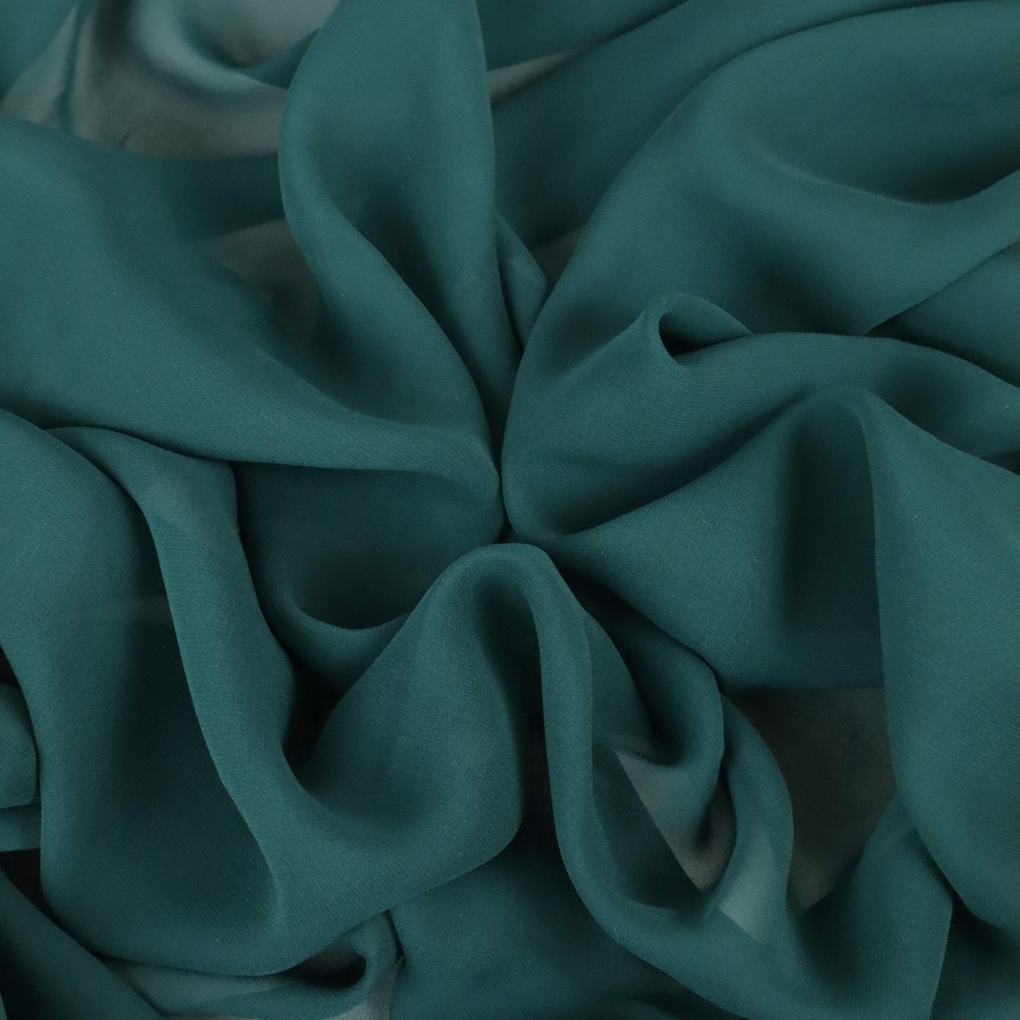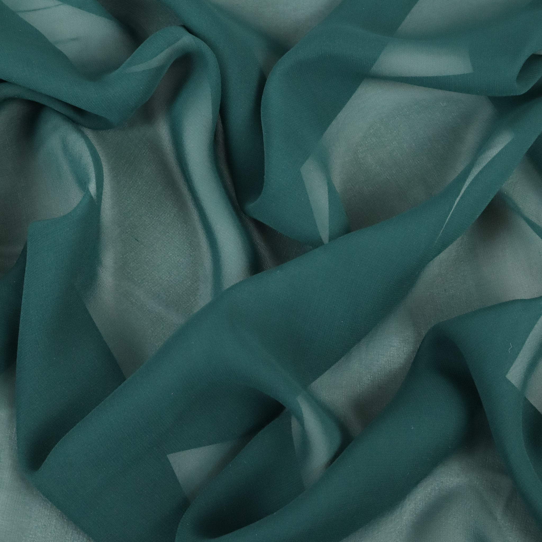 Plaza Silk Designer End – Emerald Chiffon. A silk chiffon woven in Italy, dyed to a rich emerald green. Feather-light, sheer, and fluid, this fabric is perfect for layering, eveningwear, and statement gowns. Sourced as true designer ends, available only in limited quantities.