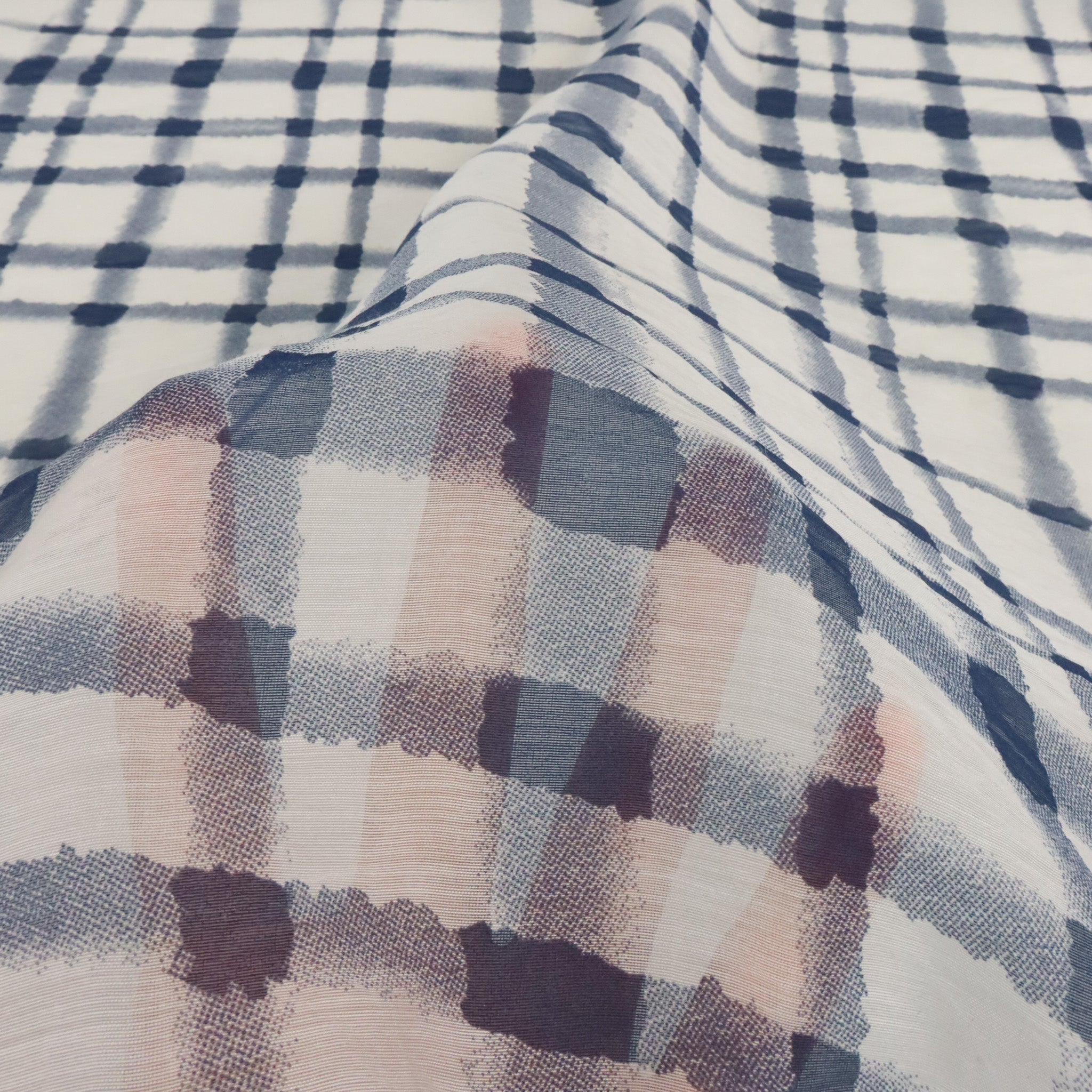 Tencel Nylon Abstract Check Print - Thistle Navy