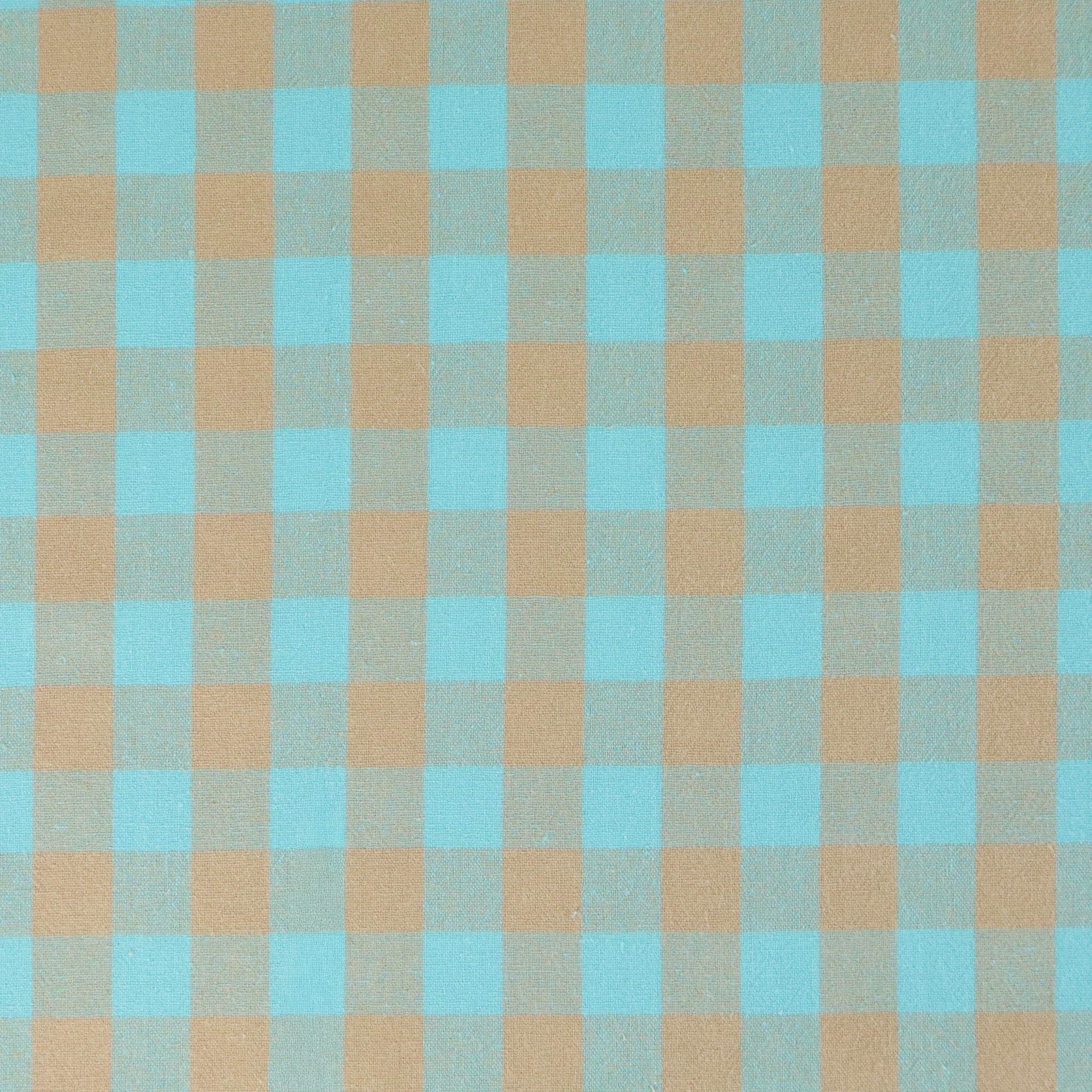 Yarn Dyed Washed Cotton Gingham in Aqua. Similar to our popular yarn-dyed gingham, this cotton check has been pre-washed at the mill for a soft, ready-to-use handle and it’s pre-shrunk for added convenience. Featuring a mid-scale gingham in aqua and beige tones, it has a crisp, cheerful look perfect for warmer days. Breathable with a lightly structured drape, this woven cotton offers breezy comfort with durability making it ideal for layered skirts, dresses, shirts, tops, pants, and jumpsuits. Each check square measures approximately 16mm.