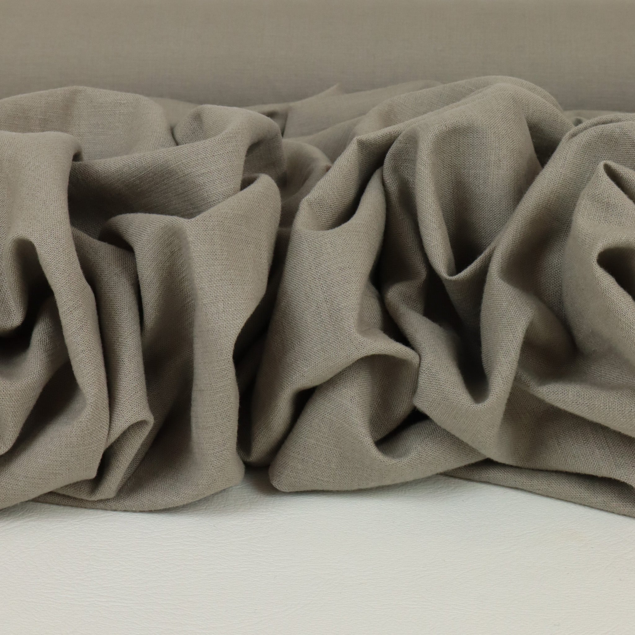 Washed Linen Cotton in Pebble. A dress weight woven with a soft texture; this is perfect for almost anything! Dresses, blouses and shirts, skirts, pants, etc.