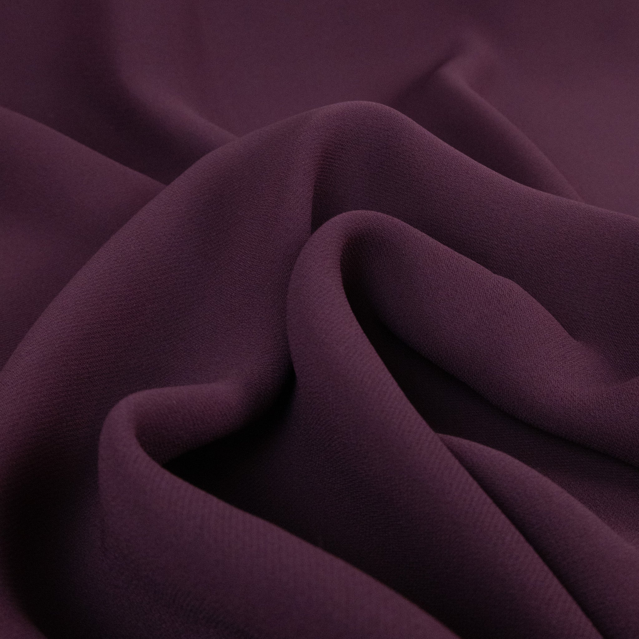 Washed Viscose Crepe Deadstock in Port. A soft, pre-washed viscose crepe featuring a subtle georgette-like texture and semi-sheer finish. Fluid, breathable, and beautifully drapey - perfect for floaty dresses, relaxed tops, and lined skirts.